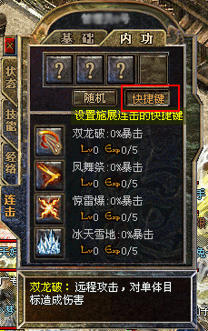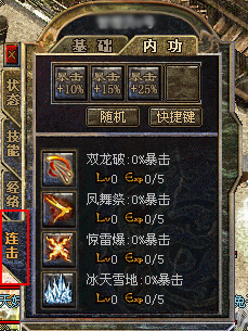 第一步:点击人物内功界面的“连击”按钮,进入连击设置页面。