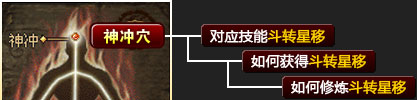 | 神冲穴是奇经的第一个穴位,通过奇经神冲丸可以打通该穴位,打通之后即可获得特殊的技能:斗转星移。 |