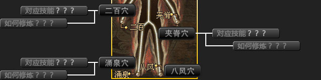 | 奇经是隐藏在人体诸多经脉之下的一条复杂且神奇的经脉,其上共有神冲、二百、夹脊、涌泉、八风五个穴位,每一个穴位都暗含神奇的效果,打通穴位可激发人体潜力,获得特殊的让人意想不到的某些能力,对于这些穴位进行挖掘修炼,可以提升对于特殊能力的掌握和升级。 | |